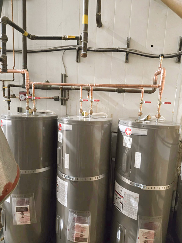 We installed 3 new electric water heaters at a small food plant after the existing commercial gas tank failed.