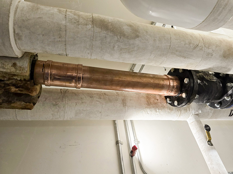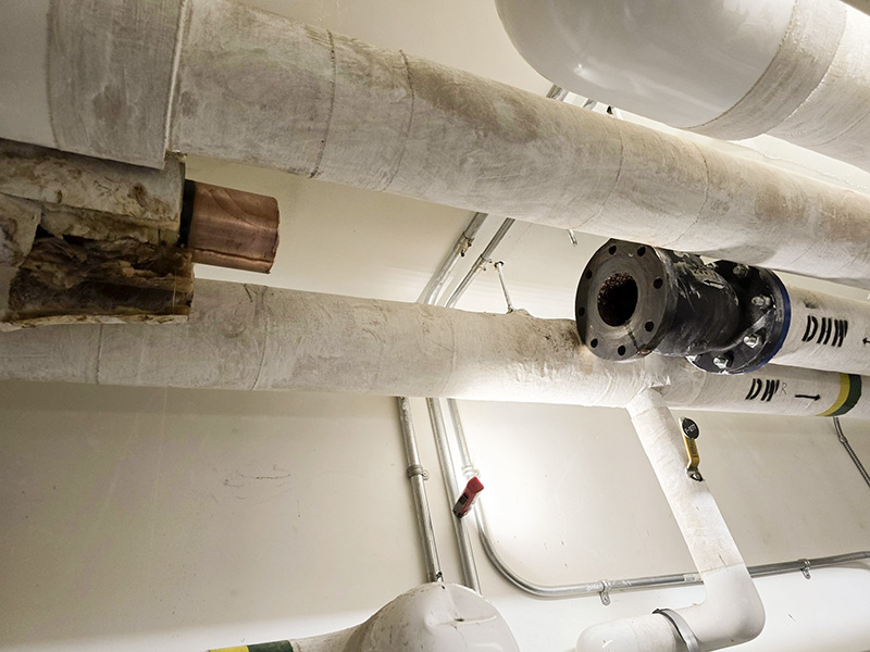 Successfully repaired a 4″ domestic hot water main with limited time to isolate hot water to guests.