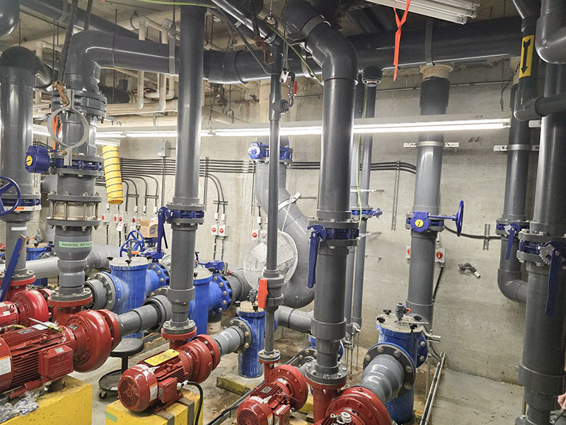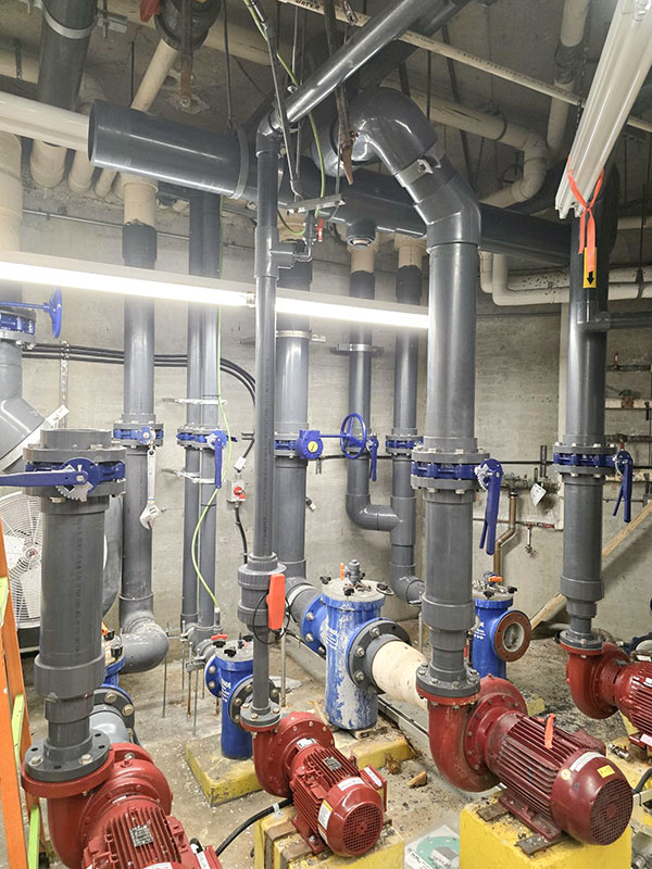 This pool mechanical re-pipe project is progressing exceptionally well! We are currently ahead of schedule and on budget. The project involves replacing the old sch.40 pipe with sch.80 PVC, executing pump retrofits, and installing new valves equipped with all stainless steel hardware.